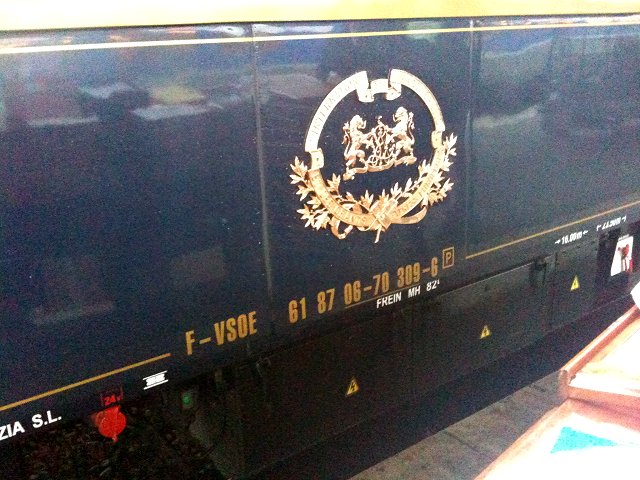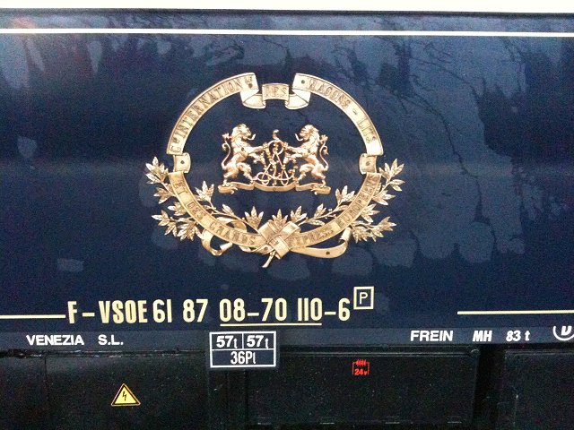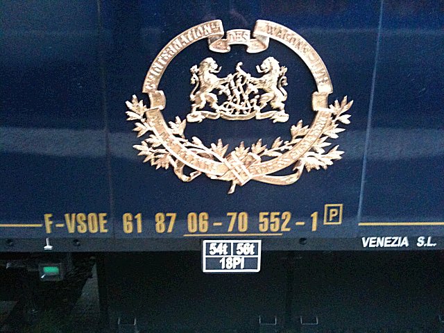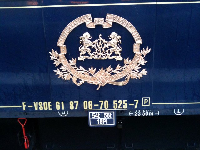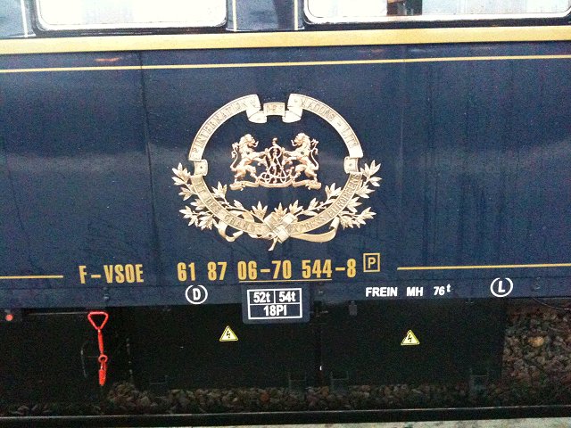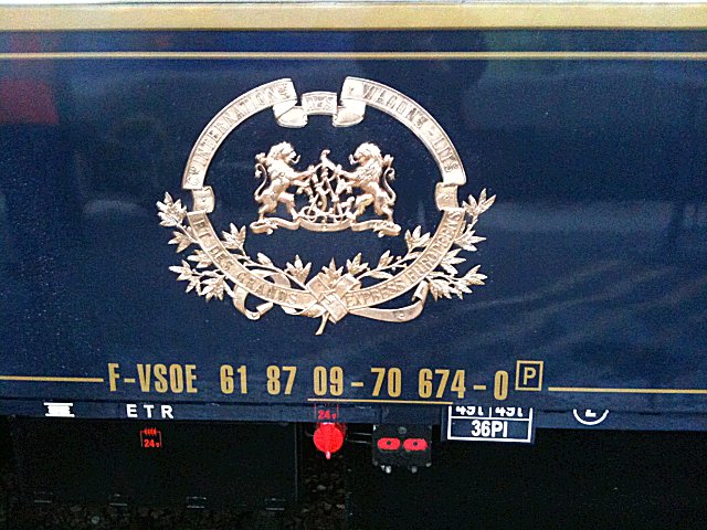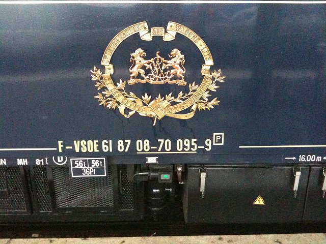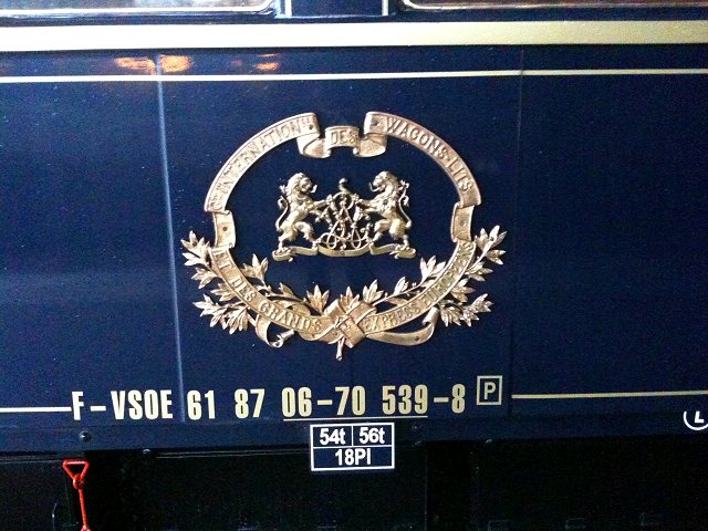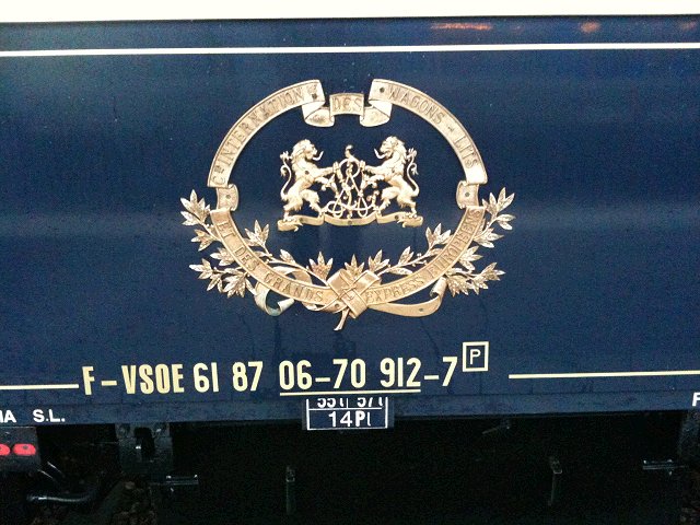 Sigle du VSOE appliqué sur une des faces latérales de la voiture Pullman n°4141